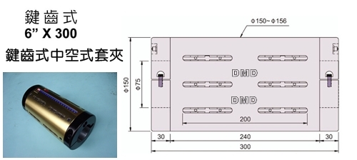 鍵齒式中空式套夾EC004-φ6"x300L說明及尺寸圖