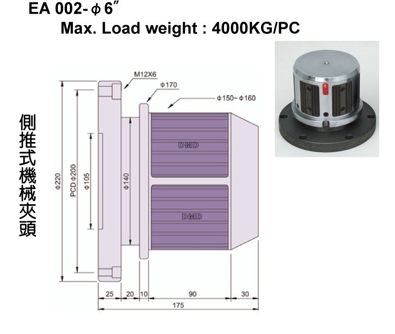 側推式機械夾頭EA002-φ6"說明及尺寸圖